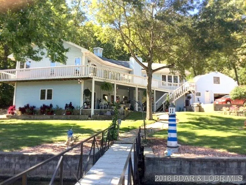 ** PERFECT FOR VACATION RENTALS, MULTIPLE FAMILY OWNERSHIP, PONTOON BOAT LOVERS ** This 4 BR home (3400 SF) sits on a gentle lot with 180' LEVEL waterfront in a quiet cove location - features 2 Master Suites, wraparound deck, patio, gazebo with hot tub, beautiful lawn, and much more. CONCRETE dock with 2 slips, 2 pwc slips, and swim platform - all hoists included. Covered/uncovered parking for 6+. Spoil your guests in the cute 2 BR GUEST HOUSE (800 SF) above the lakeside garage. Paved county roads and close to all the action by water or land! DOCK MEETS CODE, NEWER HVAC, AND NEW SEPTIC TANK (4th bedroom is nonconforming)** includes HUGE outbuilding shown in pictures **