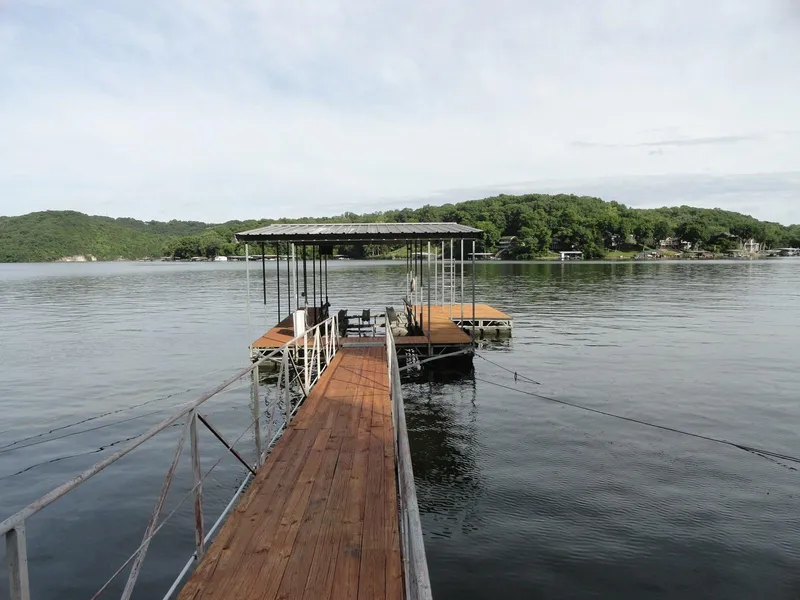 Privacy surrounds this two story lakefront home. Spectacular main channel view at the 10 MM Big Niangua. Gentle to near level lakefront offers one acre m/l and 230 ft m/l seawall lake frontage at end of road location. Deep water with boat dock , swim deck and 10,000 lb boat lift . This 2 story brick home features 3 bedrooms, 2 baths and a guests bath. 2 fireplaces, lots of storage. 2nd living area on lower walkout level with kitchen, bedroom, family room., 2 car attached garage features a drive though door for easy access to lakefront , lots of storage and cabinets throughout. Wrap around deck and concrete patio. Detached workshop/garage, storage and a grow room set up. This home offers room for updating with much potential . Enjoy the views lasting all day and night. Lots of parking or garden area. GPS will take you left on Siesta stay right.