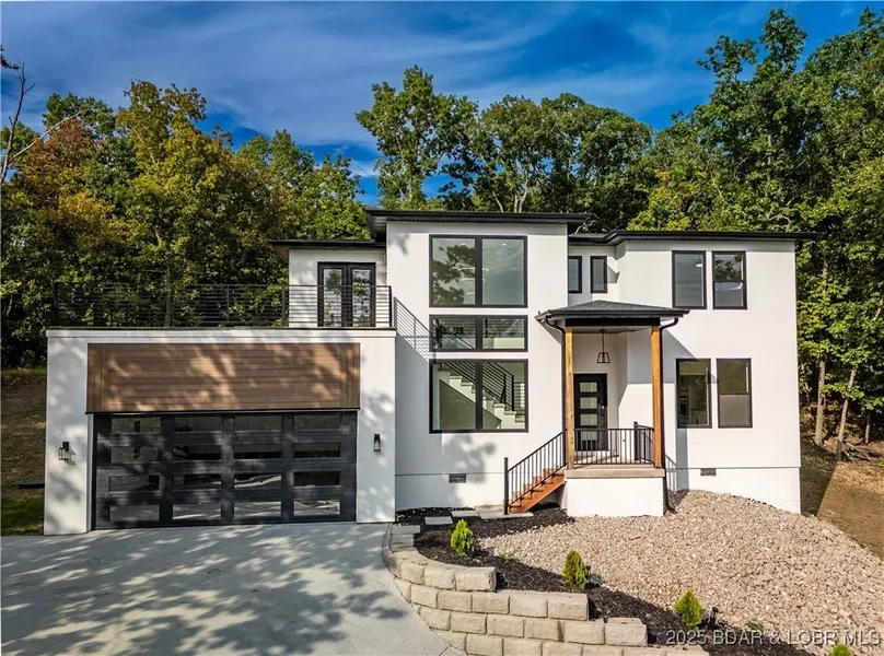 Contemporary New Construction in Village of Four Seasons priced at $225/sq ft. This Osage School District, 4 bed, 2.5 bath home offers year-round LOZ views w/ a modern design & luxury finishes. Entertain from the chef's kitchen featuring a walk-in pantry, beverage bar & seamless access to covered patio. Hollywood style skydeck is perfect for practicing golf swings, outdoor workouts or happy hours @ sunset with an add'l wet bar & sitting room on upper level. Oversized garage provides space for a car lift. Primary suite conveniently located off mudroom boasts a spacious walk-in closet, tiled walk-in shower w/ Bluetooth speakers & ambient lighting package for spa-like comfort. A vaulted great room centers around a striking electric fireplace creating the perfect space to gather. Be sure to explore the finished crawlspace equipped w/ task lighting throughout. Get unmatched access to Four Seasons amenities-multiple outdoor pools, tennis & pickleball courts, indoor waterpark, clubhouse w/ fitness center, boat ramps, storage for trailers & campers, campground & interior fishing lakes. Adjacent lot MLS# 3582493 for sale too & would perfect for driveway extension with gentle approach.