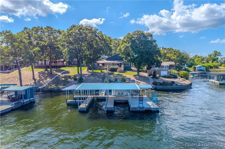 GENTLE LOT AND VIEW! Gorgeous waterfront home just off the 11mm in beautiful Lake of the Ozarks. Welcome to this spacious one-level living, 5 bedroom, 4 bath home with 3 garage spaces and a dock. Step inside to the open living, dining, & kitchen area's designed with large families and entertaining in mind. The open kitchen has plenty of space for the chef's in the family offering granite counter tops, stainless steel appliances, island breakfast bar, and extra room for dining. The master bedroom sits lakeside has an en-suite with a soaking tub, walk-in shower & closet. The main level also offers 2 other bedrooms. Upstairs offers an extra family room, 2 bedrooms, & extra space that could be used as a work out room, a game room, or extra beds for guest. A four seasons room, a covered screened deck, & an open deck ensures the best view's in any weather. The dock offers a 12x32, 10x20, & 12x12 slips, a 6x13 storage with bar, a swim, dive platform, & ladder, and plenty of room for sunbathing. This beautiful lakeside retreat is completely furnished and ready to go for nightly rentals, to be used as your relaxing get-a-way, or your new primary sanctuary. Don't let this one slip away!