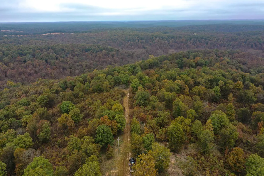 As you take a left off of the gravel road and you will come to a flat open area with a storage shed or small living quarters. There is a drilled well and electricity on the property for any of your needs. From there, it is all up and down, left and right. The ridges and ravines on this tract are remarkable. You really get a sense of how beautiful yet rugged the Ozark foothills of Missouri are. Bring your walking stick! There is an ATV trail that is cut throughout most of the property, allowing you to acc...