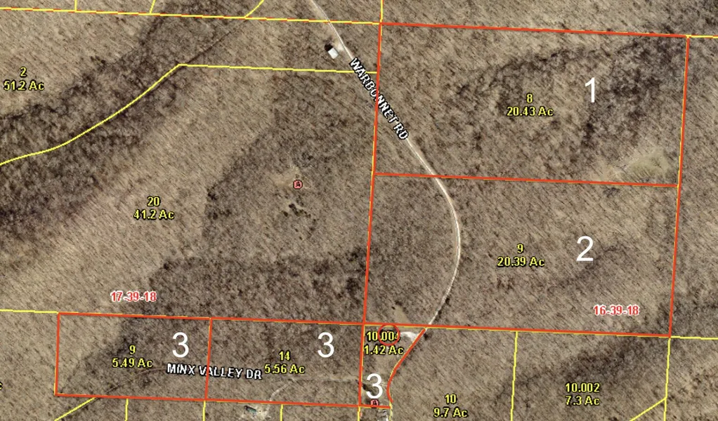 Discover 53.29 acres offered in 3 parcelstwo vacant tracts (20.43 & 20.39 acres) and one 12.47 acre parcel featuring a 2-bedroom, 1-bath mobile home, well, septic, two RV hookups, and a large Conex storage container. Ideal for recreation, rural living, or investment. Bid on one or all! 5% Buyer's Premium.