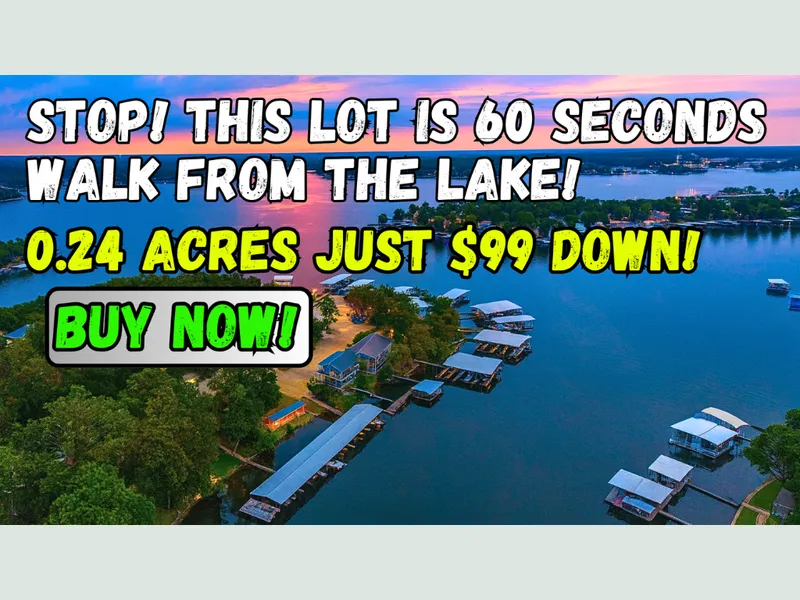 One Payment: $5,499 (Similar lakefront lots sold for $10,000+, but not for long!)