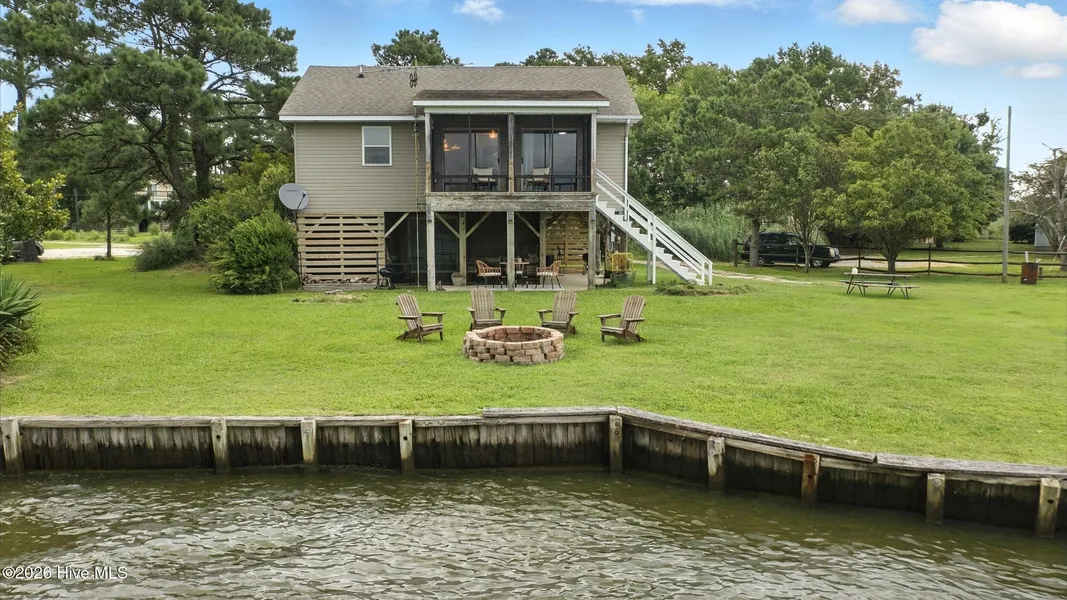 Positioned at the end of a quiet dead-end street and surrounded by water on nearly every side, this exceptional waterfront retreat offers wraparound peninsula views directly on the Pasquotank River-a setting that is both rare and unforgettable. Situated on 0.64 acres across two lots, the property features fully bulkheaded, wraparound waterfront access, delivering panoramic water views, enhanced shoreline protection, and a level of privacy that is increasingly difficult to find. Designed for effortless coastal living, the property includes a private boat slip with overhead cover and dock, making river access simple and convenient. Whether your days are spent boating, fishing, kayaking, or relaxing with the coastal breeze, this location provides an unmatched blend of seclusion, tranquility, and accessibility-ideal for year-round living or weekend escapes. Currently utilized as both a successful Airbnb and personal vacation home, the property is completely updated and move-in ready, offering immediate income-producing potential or turnkey enjoyment as a primary residence, second home, or investment property. Thoughtfully designed for low maintenance and ease of ownership, this home allows you to spend more time enjoying the water and less time on upkeep. The interior layout is both functional and inviting. The first floor offers a full bedroom, full bathroom, and utility room, perfect for guests or convenient main-level living. The second floor opens to a spacious, open-concept design featuring two additional bedrooms, a full bath, and a screened-in balcony overlooking the water, providing the perfect setting to unwind and enjoy breathtaking sunset views over the river. Private, distinctive, and beautifully positioned on the Pasquotank River, this is more than a home-it is a rare waterfront opportunity offering lifestyle, flexibility, and long-term value.