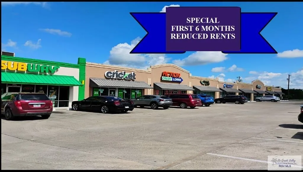 2,400 s. f. Office/Retail Suite. Located at the prime intersection of Exp. 77 & Sam Houston Blvd. (major thoroughfare within the City.) Easy access off and on Exp. 77. Strategically located adjacent to Auto Zone, Jack-In-The-Box, Burger King, and several other national retailers and neighborhood businesses. Site provides prime exposure to all expressway traffic. Sister-City with Harlingen (3 miles), 20 Minutes from Brownsville, 45 minutes to McAllen. TERM: Minimum 5 year lease. Gross lease rate. Tenant pays electric.