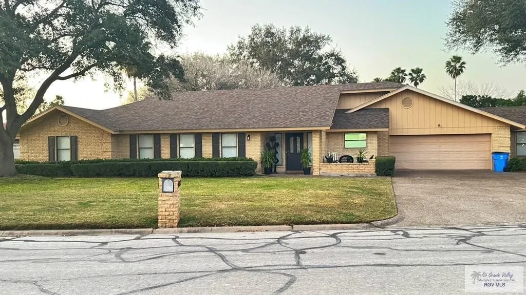Nestled in the desirable Palm Valley community, home of the Harlingen Country Club, this beautiful residence offers a spacious and inviting layout. The generous living room seamlessly connects to the den and formal dining area, creating a perfect space for entertaining. Stylish wood-look tile flooring, faux wood blinds, and a versatile office or study enhance the home's appeal. A wet bar is conveniently located off the dining room. The well-appointed kitchen features quartz countertops, a center island, two pantries, and a cozy breakfast nook, with all kitchen appliances included in the sale. Off the garage, you'll find a flexible space ideal for a maid's quarters, exercise room, or additional bedroom with a full bath. The covered patio extends to an open patio, providing a great outdoor retreat. The property is complemented by mature trees and a sprinkler system for easy maintenance. H...
