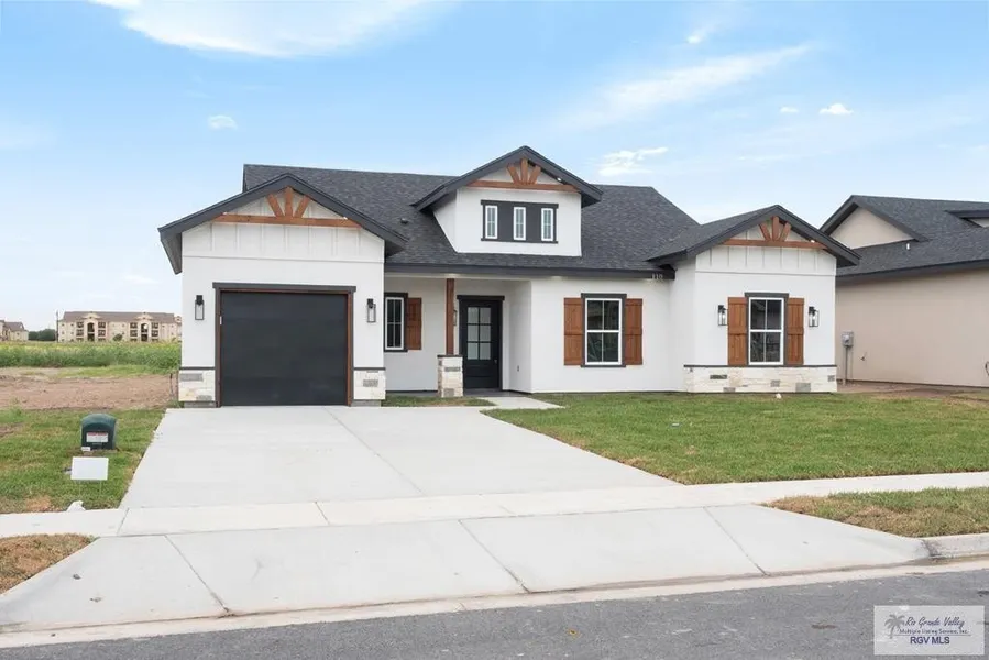 New Construction coming up in newest phase of Valle Alto in Los Fresnos! Great location and Floor plan, split bedrooms. Interior modern design with black and white tones with modern recessed lighting matching throughout, quartz counter tops. Black an accent wall in living room accents beautifully with tiled backsplash in kitchen. Indoor laundry room. Don't miss out!