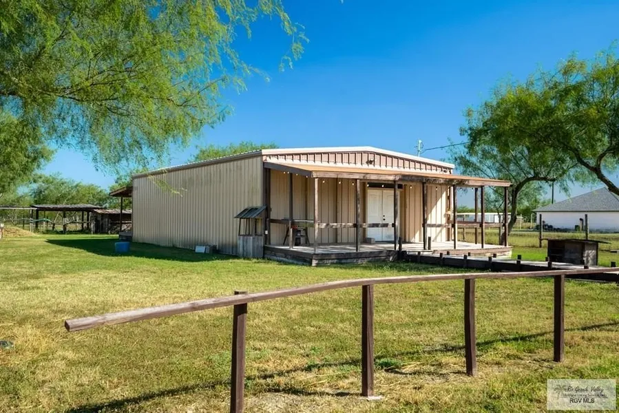 Ranchette on 6 acres featuring a metal frame home that's been thoughtfully converted into a residence, just waiting for your finishing touches! Perfect opportunity to personalize the final details like countertops, fixtures, and trim. The home offers spacious open living areas, a large kitchen island, a bonus room that can be used as a study, additional bedroom, or flex space, and custom shelving throughout. Outside, enjoy true country living with a chicken coop, duck house, pig pen, and four horse stables. The property is fully enclosed with a barbed wire fence and includes a gated entrance for added privacy and security. Plenty of space for animals, equipment, or outdoor hobbies. A new HVAC system was installed approximately five years ago, and the home did not flood. Peaceful location on Altas Palmas Rd with easy access to Harlingen amenities, offering rural charm and endless potentia...
