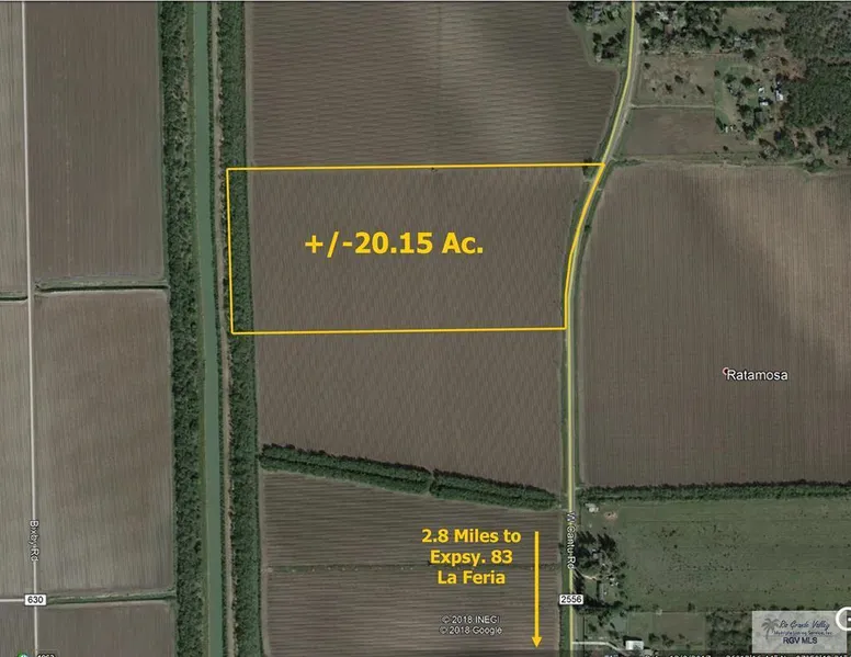 PRICE REDUCED!! Great piece of irrigated farmland in a great location just 2.8 miles north of Expressway 83. This tract of land is just over 20 acres and has about 600' of frontage on FM 2556 which is a paved highway north of La Feria. The land has access to irrigation water and good drainage and would be a great location for a premier home site. The land lies in Flood Zone X which is the best designation in Cameron County. The land is being farmed and the land currently has agriculture exemption keeping the taxes very low. This is a great piece of property for an investor, developer, or person wanting to build a home.