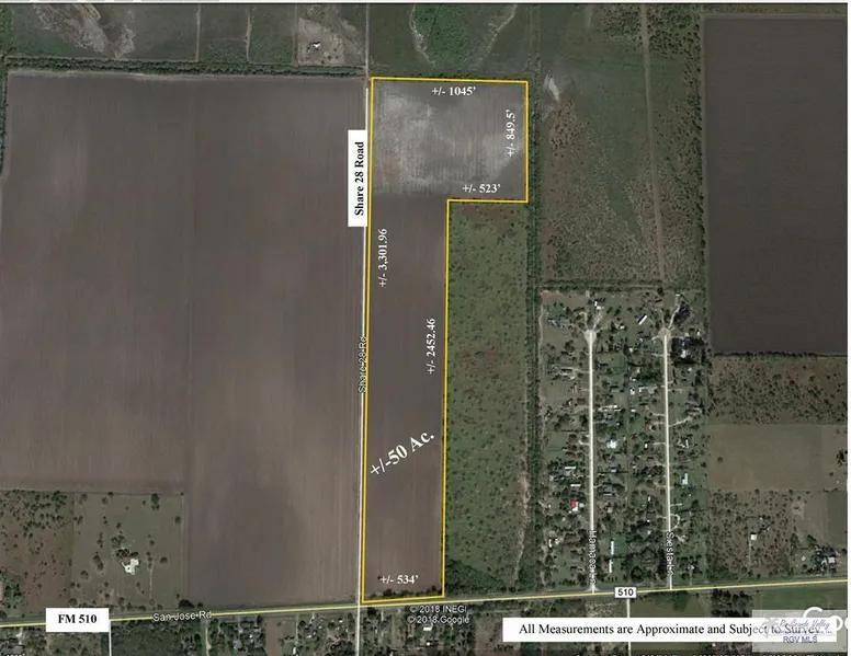 Live, Play, and Hunt all in the same place. This piece of property offers lots of options. With over 500' of frontage of FM 510 and access to city water and electricity it would make a great homesite. The front 30 acres of the property are quality, irrigated, soils with drainage tile so you can farm just about any crops and have a beautiful citrus orchard, pasture, or yard. The entire property borders brush land on two sides so you could also allow the north section to grow up in brush and have an area to hunt. Hogs, deer, and nilgai are hunted on the neighboring properties and the NE corner of this property. The property also has over 3, 300' of frontage on Share 28 Rd. so there is the possibility for a residential subdivision but additional infrastructure would be necessary.