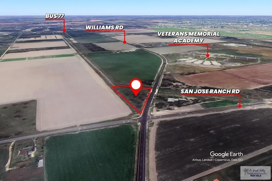 Excellent 2.71 acre piece of land for sale on the corner of Williams Road and San Jose Ranch Road in San Benito, Tx. This property has great potential for commercial or residential use. Several new developments coming up around this area. Priced at $145,000.