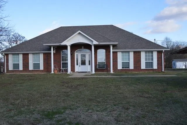 Great layout with a very large kitchen. Granite countertops. Nice fireplace in the kitchen. Home sits back off the road with a long drive. Nice pole shed for