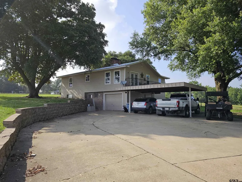 Own your own RANCH in East Texas. This is a great property. Nice pasture with fencing and cross fencing. 5 Ponds. 40 x 60 shop. Home sits nicely on top of a hill overlooking the rolling fields and pond. Granite countertops. Aspen ceiling in the living area. There are 2 Bedrooms, 1 Bath upstairs and 1 bedroom, 1 bath downstairs. There is a safe room in the garage. Nice balcony overlooking your property. Located just outside of town.