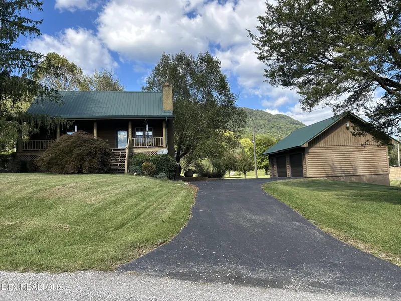 Nestled in the scenic hills of Lafollette, this 3 bedroom, 1 1/2 bath home combines rustic charm with modern convenience. Step inside to find a spacious open layout featuring warm wood finishes, vaulted ceilings, and a cozy loft, perfect for a home office, reading nook, or guest space. The primary suite offers comfort and privacy, while additional bedrooms provide plenty of room for family or guests. Outside, enjoy the beauty of Tennessee living from the inviting front porch or back porch that's ideal for gatherings. A newly built detached 2-car garage adds exceptional storage and functionality, making it easy to accommodate vehicles, tools, or workshop. This property offers both quiet country living and quick access to Lafollette's shopping, dining and Norris Lake recreation, a weekend retreat, or a rental investment, this log home is move-in ready and waiting for its next owner.