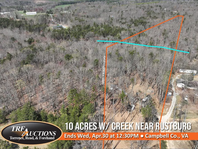 From Rustburg High School, take Red House Rd 3.4 miles to LEFT on New Chapel Rd. 0.3mi to LEFT on Button Creek Xing (gravel). 0.2mi to keep left. Property starts at creek. Continue up hill to parking area on left just before 319 Button Creek Crossing. Property is occupied by owner. Owner has large dog.