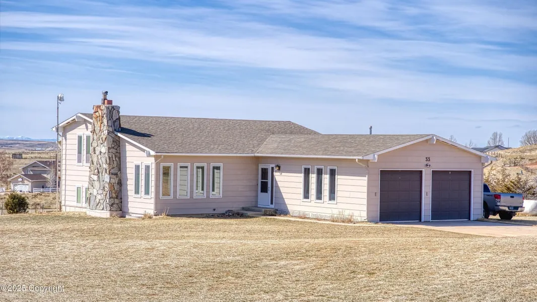 Discover the charm 33 Alpine Drive-A piece of country paradise. Stick built 4 level home offering 3 large Bedrooms, 2 Bathrooms. Beautiful hardwood floors in the entryway, spacious living room, high ceilings, rock wood fireplace. Open gourmet kitchen with plenty of counter space and cabinetry. Large dining area. Deck off of kitchen with a heavy-duty crank awning. Exceptional views of the Big Horn Mountains. Lower level has a nice family room, laundry area and French doors that lead out to a patio. Unfinished basement with plenty of storage. All new windows. 2 car attached garage is heated This property is on 4.22 acres (+-) with a 26x32 shop/barn. Fully fenced. Private well on property. With several garden fenced areas.