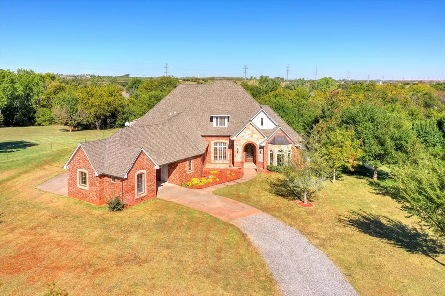Once you see it, you'll fall in love – come see why this property is one of the most sought-after in town! This 2-owner custom home is nestled on 2+ acres (MOL) with a wooded view of Deer Creek and 36'x60' shop. The front rock and brick elevation adds architectural interest and includes a 3 car garage including breezeway. A covered front porch and open seating area greet you as you approach the front door. Upon entering the home, you will experience an abundance of natural light with big picture windows overlooking the beautiful back yard. With over 4200SF, the open floor plan is perfect for entertaining while having space for designated areas. The kitchen overlooks the living room and features granite countertops, stainless steel appliances, island, breakfast bar and oversized walk-in pantry. An office with built-ins and all 3 bedrooms are on the first level and include en-suite bathrooms plus one powder bath for guests. With a split floor plan, the primary suite is opposite the other two bedrooms. The upstairs includes a large bonus room with bathroom and wet bar area. A few of the many upgrades this home includes are a whole house Generac generator (19), front + side sprinkler system (22), 3 HVAC units - 2 recently updated (22 & 19), 50 gallon hot water tank (23) + Rheem tankless for primary suite, whole house gutters (22), storm shelter (17), and many more. The huge backyard backs up to Deer Creek with wildlife such as deer and turkeys known to stop by for a visit. Easy access to turnpike from NW Expressway gets you anywhere in the OKC metro quickly + located in award winning Piedmont schools! This could be your new home. Must see in person - scheduled your private showing today!