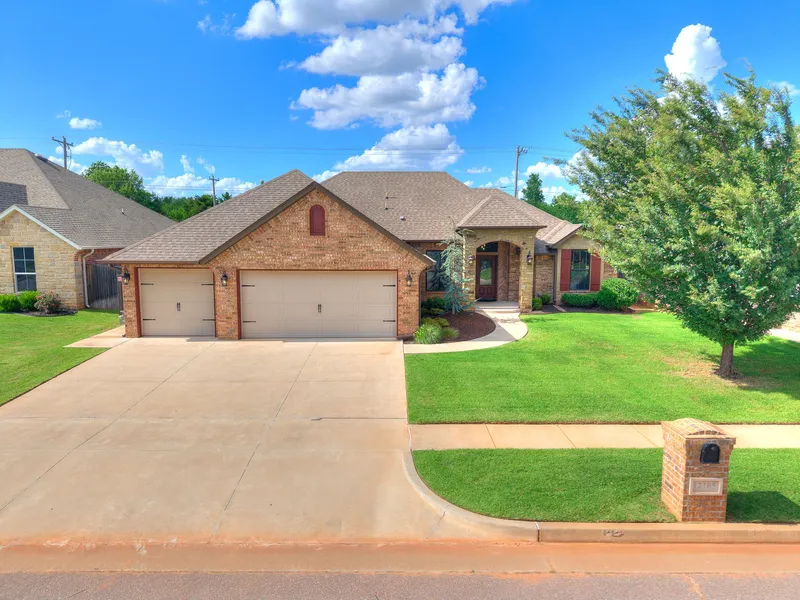 ***Popular Mustang Ridge strikes AGAIN!*** Step into the home that’s been waiting just for you! Outfitted with modern conveniences such as Cat 5 wiring, a comprehensive alarm system, fast-charge USB outlets in every bedroom and study, as well as a gas hookup for outdoor grilling on the covered back patio—no detail has been overlooked! The property boasts a stockade privacy fence with metal posts, an in-ground sprinkler system, and elegant crown molding throughout! Striking custom wood beams adorn the living room and grand entryway, while designer lighting accents the space with sophistication! The hall bathroom includes a shower/tub, echoing the spa-like ambiance of the primary suite! A large walk-in closet flows seamlessly into the laundry room, which is equipped with both a mud bench and utility sink—designed for effortless functionality! The opulent primary bath features dual vanities, a deep whirlpool soaking tub, and a spacious walk-in shower reminiscent of a five-star retreat! The heart of the home—a sprawling open-concept floor plan—centers around a gourmet kitchen complete with an oversized island, floor-to-ceiling cabinetry, and ambient LED lighting for an upscale culinary experience! This impeccably crafted 3-bedroom, 2-bathroom residence also includes a dedicated study and a 3-car garage, offering an abundance of thoughtful amenities including a storm shelter and other refined touches throughout! From the moment you enter, the artistry in design, meticulous attention to detail, and exceptional craftsmanship set this home apart—placing it leagues above the competition! ***"Honor your instincts and make the decision that leads to YOUR something remarkable."