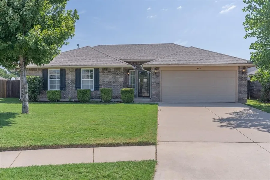 Located in a desirable Yukon neighborhood, this charming 3-bedroom, 2-bathroom home is perfectly situated on a peaceful cul-de-sac, offering both tranquility and convenience. You'll enjoy quick access to I-40 and a wide variety of shopping and dining options. The spacious living area flows seamlessly into the kitchen, which features a breakfast bar and a large window above the sink that fills the space with natural light. The primary bedroom is a comfortable retreat with a tray ceiling and an en-suite bath with a large vanity and ample storage. From the living area, garden doors open to a covered patio with a pergola, creating a perfect spot for outdoor relaxation and entertaining. The well-maintained, fenced-in backyard completes this lovely property. This is a must-see home that combines a prime location with a comfortable, inviting layout. Schedule your showing today!
