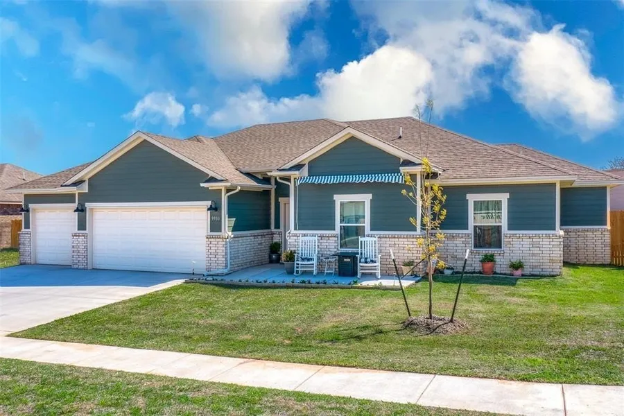 This Incredible Craftsman style home is like brand new, built in 2023! This home boast of 3 bedrooms, 2 full baths and a 3 car garage. With many custom finishes, and modern design touches they have added from flooring, to light fixtures. As you enter the home you see the open lay out, high ceilings, amazing light colored wood look tile through out the main area of home. It has so many windows plenty of natural lighting through out. Entering into the kitchen with beautiful white cabinets, upgraded stainless appliances, massive kitchen island with plenty of work space. Entering the primary suite the bedroom is very spacious, the tranquil bathroom feels like you just stepped into a spa, gorgeous walk-in shower, double vanity with granite, oversized custom closet, tile floors. The large laundry room features plenty of extra cabinets for storage and the option for gas or electric dryer access. The three car garage has storage shelves that stay with the house, and the yard is fully fenced. This Beautiful home sits within walking distance to Yukon schools, and the community has a park. Has many smart home features. Call me for your personal showing.