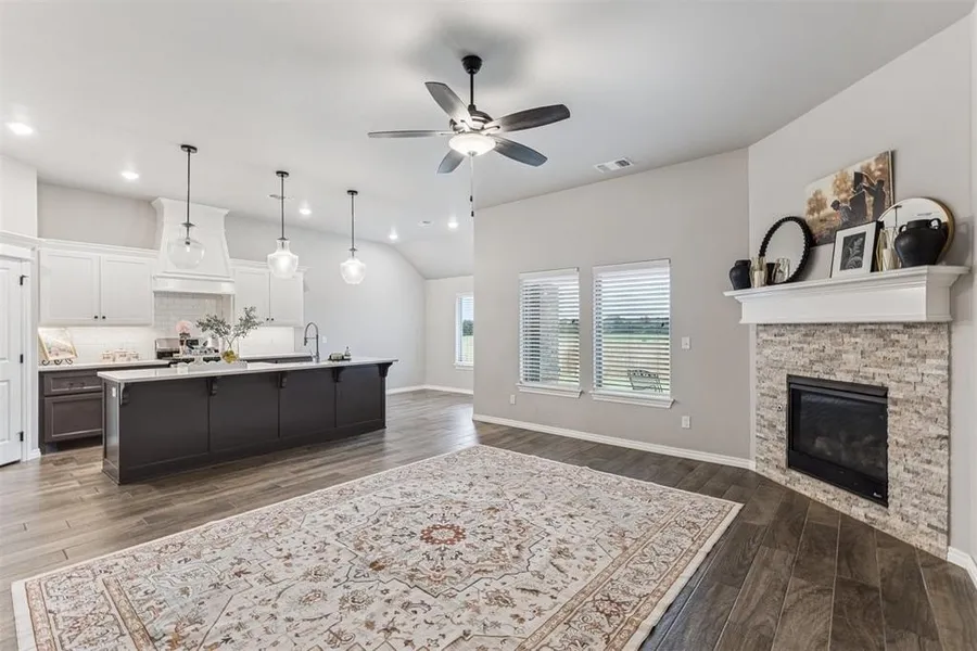 Move-In Ready, Better Than New! Built in 2023 and meticulously cared for by its one owner, this stunning home offers thoughtful upgrades that set it apart from new construction. Custom blinds throughout and a fully fenced backyard are already in place-saving you time and expense. Inside, you'll find timeless finishes, including wood-look tile in the living areas and a stacked stone gas fireplace with a custom mantle. Elegant pediment treatments over doors add a refined touch. The kitchen is a chef's dream with 3cm quartz countertops, stainless steel gas range, oversized vent hood vented outside, upgraded dishwasher, built-in microwave, under-cabinet lighting, and a walk-in pantry. The private primary suite is a true retreat featuring a European-style walk-in shower with floor-to-ceiling tile, soaking tub, framed mirrors, 3cm granite countertops, and a large walk-in closet with a third-ro...