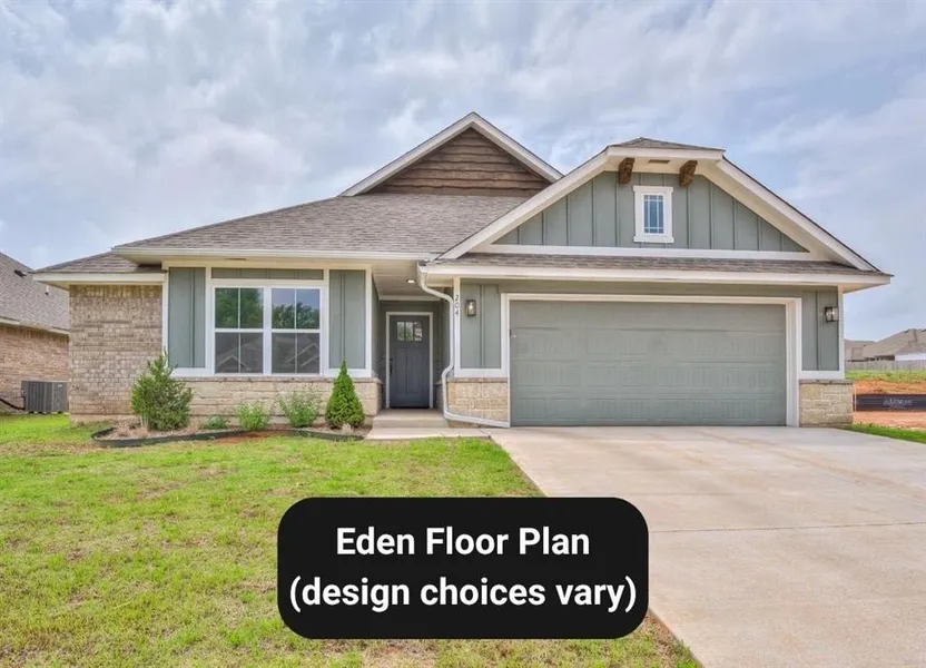 The Eden offers the perfect blend of comfort and smart design in a 1,677-square-foot floor plan featuring three bedrooms, two full bathrooms, a dedicated study, and a two-car garage, ideal for families, professionals, or downsizers seeking quality without compromise. Its open concept living, dining, and kitchen areas are designed for everyday living and entertaining, complete with an electric fireplace, a center island, a pantry, and seamless access to the covered patio. The private primary suite includes a spacious bedroom, dual vanities, and a walk-in closet, while two additional bedrooms share a full bath, offering flexible space for guests or hobbies. A front-facing study adds versatility for work or play. With Bungalow, Craftsman, and Traditional elevation options, The Eden combines timeless curb appeal with a highly livable, functional layout.