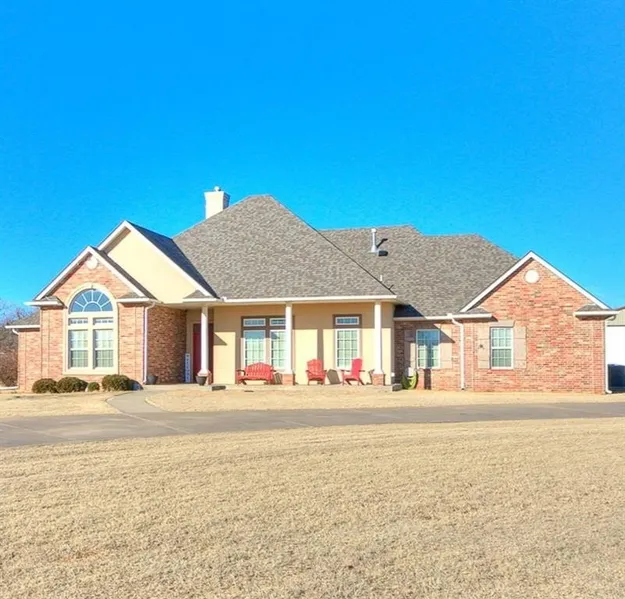 Spacious home featuring two primary suites, a dedicated office, large dining room, and a dream utility room. Chef's kitchen with a custom built-in eating area, large cooktop, double oven, and a built-in under-cabinet icemaker. Includes a separate pool table/game room plus an upstairs bonus room with full bath, ideal for a media room or guest retreat. Enjoy outdoor living with a saltwater in-ground pool, deck and pergola, and a 30x40 fully insulated shop (1,200 sq ft) with electric-all set on 1.81 acres with a privacy fence. New roof in 2024. Fresh paint in the last two years. Prime location in the heart of Mustang! Pictured pool table negotiable. Washer & Dryer do not stay. Garage Fridge does not stay - all other appliances stay with home. Buyer to verify schools.