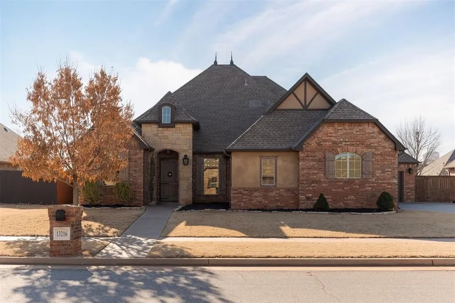 THIS HOME OFFERS A 3.4% ASSUMABLE INTEREST RATE, which which could give a new buyer a steal on a mortgage. Ask your realtor for more info on the assumable loan, this could be an incredible opportunity to save hundreds per month for future owner! 13216 NW 4th Street BEAMS with elegance and character. This stunning home demands your attention with the gorgeous wood accents and finishes throughout. Upon entry, you will be greeted by a warm and inviting space, which could be a reading nook, formal dining room, or a formal living room. This space shares a two sided fireplace with the main living room, which is such a rare find in homes built today. Situated up front is a 4th bedroom which can also be used as an office. The hallway leading to this room features a built-in linen cabinet and a guest powder bath. The main areas beam with natural light, as they are situated with south facing large windows. The kitchen is well designed with an expansive island and coffee bar, granite countertops, and built-in appliances. The breakfast nook is incredibly spacious with high ceilings. Stepping outside to the back patio from this area, you will find a covered patio fully enhanced with a fire pit. The back yard is quite oversized. The primary suite is opposite all of the other bedrooms with plenty of seclusion. Step into your own primary retreat with a European walk-in shower, deep bathtub, dual vanity, and large walk-in closet. Two more bedrooms await on the opposite side, you'll pass the laundry room, stairs, and find two bedrooms which share a Jack-and Jill bathroom. Upstairs is a large media room (or bonus room), which also has a closet and a half bath. Settler's Ridge is a highly sought after community in Yukon, with a park, and quarter mile walking trail. I40 access is less than 5 minutes away, with shopping and dining just around the corner. Storm shelter, sprinkler system, and fully fenced back yard!
