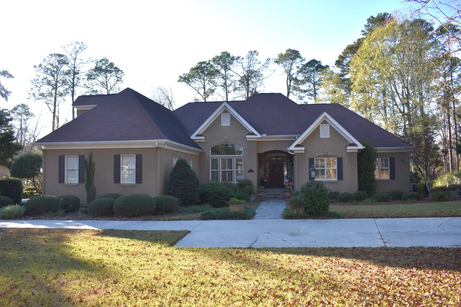 A timeless Southern Living masterpiece, this exquisite custom home-built in 1995-rests on three adjoining lots totaling 4.16 acres, offering privacy, elegance, and gracious entertaining spaces throughout. The corner lot is enhanced by a serene wooded backdrop along the south side and rear of the property beyond the fence, creating a picturesque, estate-like setting. A circular driveway provides effortless guest access, complemented by an attached two-car garage and an additional two-car carport conveniently located across from the garage. Step inside to a spacious and thoughtfully designed main level, where the foyer opens seamlessly into a welcoming living and dining room combination, creating an inviting first impression filled with warmth and natural light. The chef's kitchen features stainless steel appliances, a center island with seating, cabinetry with pull-out drawers, and a walk...