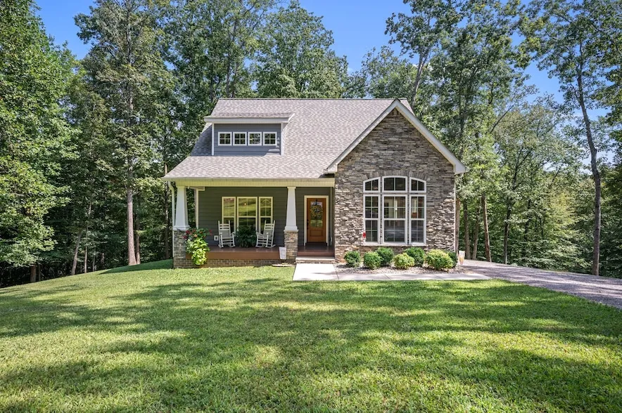 Tucked away on 9 mostly wooded acres, this practically new home offers a tranquil retreat surrounded by nature. Step inside to a home filled with natural light and a warm, inviting atmosphere. The spacious living room features vaulted ceilings and a gas fireplace. The large kitchen boasts granite countertops, a large bar adjacent to the living room, and stainless appliances, perfect for both everyday living and entertaining. With every bedroom featuring its own bathroom plus a downstairs half bathroom, this home provides a comfortable and convenient layout for family and guests. Real hardwood floors and tile are throughout the home. Practical features like spray foam insulation, an encapsulated crawl space, Everlast Composite Siding, and excellent well water ensure peace of mind. With distant waterfall sounds, you ll never want to leave the covered back porch. Possible second soil site, ...