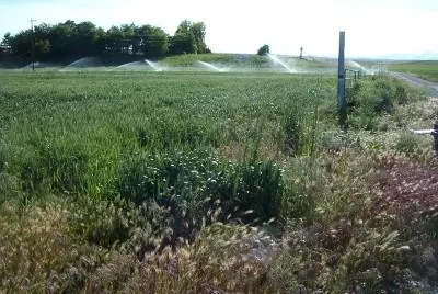 295+/- acres with irrigation rights. Irrigation water is from an irrigation well and is put on by 6