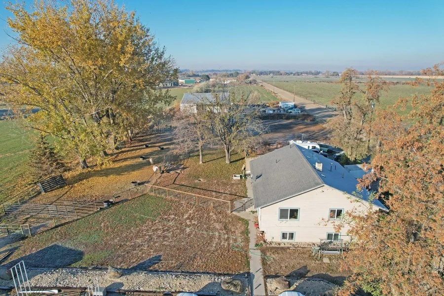 This 6 acre ranch NW of Caldwell, is just south of the Boise River, near Notus. The ranch features a 2,292 sf 4-bedroom, 2.5 bath home, with a daylight, walk-out basement. The home offers a cohesive design across both floors with 2 bedrooms and 1.5 baths on the main level, with an additional 2 bedrooms and 1 bath on the lower level. The basement has a separate entrance, and is plumbed for a second kitchen offering potential use as an Accessory Dwelling Unit (ADU). Additionally, the home has an attached 2-car garage, and a fenced backyard with mature trees. The 60x 65 shop has extra tall overhead doors, 220 power, wood heat, and 2 open-sided bays perfect for hay storage, or RV parking. The land has irrigation water rights, and is mostly fenced, with about 3 acres in grass hay. Dont miss this charming ranch with practical amenities in a quiet rural area with easy access.
