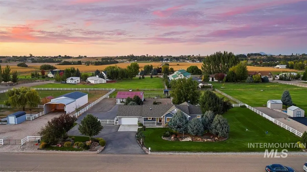 Fully irrigated 1.5 acre horse and livestock property, tucked in a beautiful country setting within coveted Whisper Creek. Impeccably maintained home situated on expansive manicured grounds that boast heated shop and gardening shed.