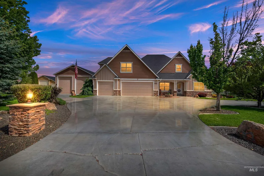 Beautiful home on acreage with shop! Could be a 5 bedroom with 3 master suites as bonus room upstairs has a bathroom attached. Main floor master suite at the back of the house is well appointed with a soaker tub and separate shower, huge walk-in closet, outside access. 2nd large master suite upstairs plus bonus room that could also be a suite. Beautifully appointed kitchen with large dining, huge great room on main level plus formal living and bonus room upstairs. 4 bathrooms! Heated shop is 30x50 with 14 foot doors on both bays, openers, built in shelving, and benches, bathroom, fully finished walls and painted floor. Truly delightful space! 2 patios, spacious grounds are all in lawn currently, well manicured, and move-in ready. Please refer to CCRs for allowed farm animals in the subdivision.