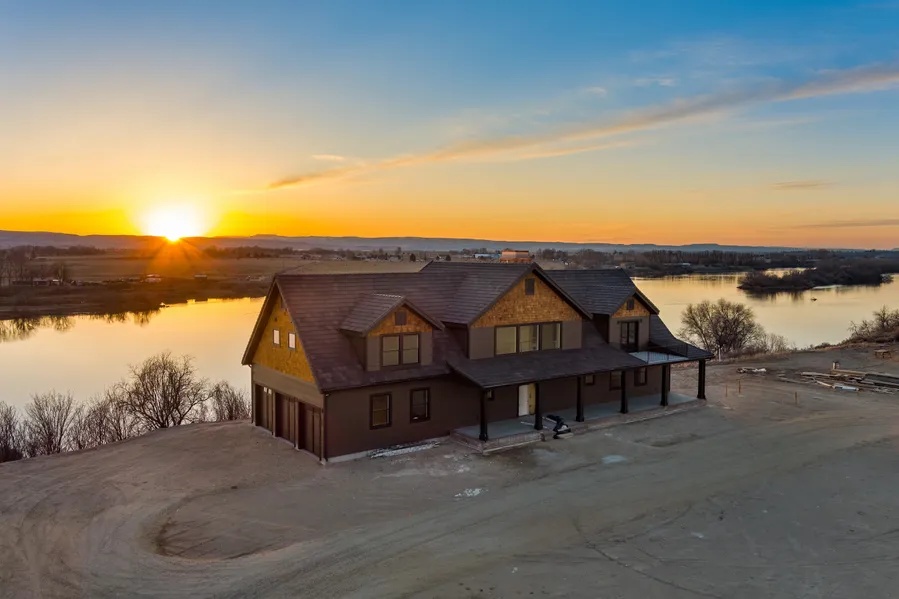 This is an exquisite home in a picturesque setting on the banks of the Snake River providing direct river access and inspiring views overlooking the Owyhee Mountains. Scheduled for completion in Spring 2023, this home has been meticulously crafted with its surroundings in mind. Inside you will find approximately 6,400 Square feet of living space stretched across a sprawling open floorplan featuring 20-foot ceilings and a sophisticated design. The list of luxuries includes a grand kitchen with designated prep space, a wine cellar, and a guest suite appointed with its own full kitchen, bathroom, and private patio with heaters to keep you warm on those chilly nights. The location within the Snake River Valley American Viticultural Area, places you along the Sunnyslope Wine Trail surrounded by vineyards, orchards, and acres of some of the most scenic farmland in the Northwest.