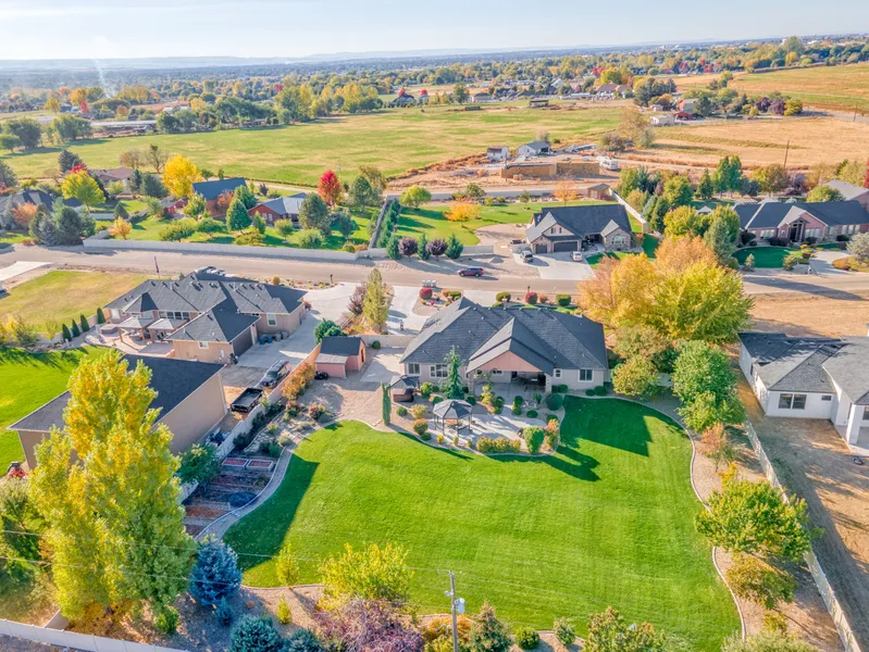 Welcome to a private paradise. Set on a quiet dead end street, this pristine, custom property, on a meticulously landscaped acre offers luxurious living outside and in. This 4 bedroom, 3 bath single level home features a split bedroom floor plan, a large great room, a master suite with a walk in closet, along with a glamorous master bath with soaker tub, dual head shower, and a large dual vanity. The east facing back yard features a covered patio with outdoor kitchen, a dining gazebo, a hot tub gazebo, a custom fire pit, considerable garden space, mature landscaping, numerous fruit trees, and a micro vineyard. The three car garage offers outlets for an electric car & an RV. You'll also appreciate the RV parking, the 12'vinyl gate, and the horseshoe driveway for easier access.