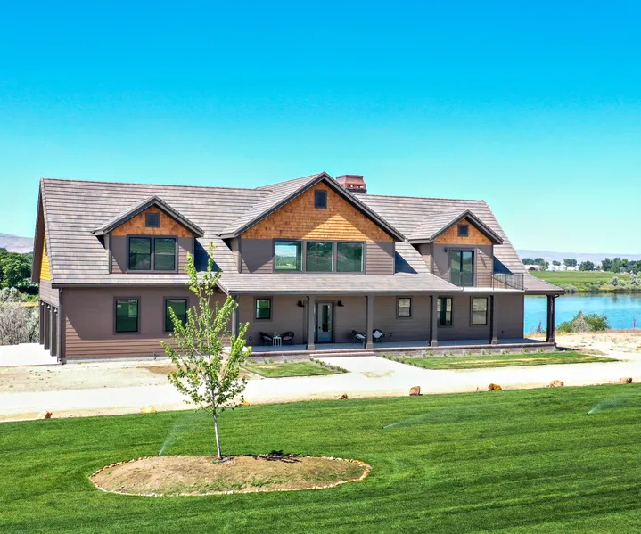 This is an exquisite home in a picturesque setting on the banks of the Snake River providing direct river access and inspiring views overlooking the Owyhee Mountains. This home has been meticulously crafted with its surroundings in mind. Inside you will find 6,400 Square feet of living space stretched across a sprawling open floorplan featuring 20-foot ceilings and a sophisticated design. The list of luxuries includes a grand kitchen with designated prep space, patio heaters to keep you warm on those cool evenings, and a guest suite appointed with its own full kitchen & bathroom. The HVAC & water heater feature a solar heating system that is highly efficient and there is a potential tax credit for the buyer. The location within the Snake River Valley American Viticultural Area, places you along the Sunnyslope Wine Trail surrounded by vineyards, orchards, and acres of some of the most scenic farmland in the Northwest.