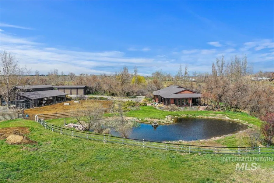 A horse owner/farmers paradise. One side of property borders BLM land for privacy. An artesian geothermal well allows for the entire home, exterior walks, shop, apartment and tack room to be heated. There is a live creek running through the property and private pond. A 5 stall horse barn w/heated tack room, covered hay storage area, & covered parking for truck & horse trlr or RV & enclosed heated tack room & large covered hay storage area. Acreage is being farmed in alfalfa. An abundance of pasture & a round pen. Home is complete with tiled heated floors throughout, granite countertops & large open spaces. Please see “D” for the list of all the extraordinary features of this property.