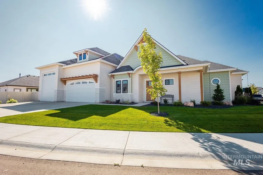 Where luxury meets practicality and charm. A main level living- home with upstairs bonus area and bedroom w/ full bath. Amenities in abundance and includes upgraded Thermador appliances, undermount sinks, ample pantry and cabinets, an open living concept. This Primary Room retreat speaks R&R and with everything in mind. Visit the Estates for the simple lifestyle. Take full advantage of the corner lot and ease of maintenance. The orientation of home in mind of the Boise Area seasons. Simple commute to freeway and highway.