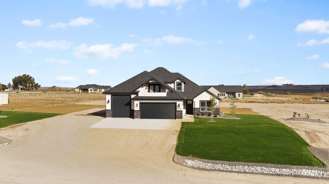 Custom home with 40 FT RV BAY ON 2.1 ACRES! You will never get tired of the BEAUTIFUL sunsets and views that are an everyday treat. Soft close all wood shaker cabinets/drawers, quartz counters, full tile backsplash, stainless appliances and oversized pantry plus 2 ovens in your rock star kitchen, one which is also a convection oven and an air fryer!! Open concept plan that features Vaulted ceilings in great room. This 4 bedroom 2.5 bath home is close to great fishing in the Snake River. Bonus room upstairs could be 5th bedroom. Primary bedroom on the main level with ensuite that will feel like a spa visit every time you enter with stunning tile shower, dual vanities, large soaking up and walk in closet connected to laundry. Sitting on over 2 acres there is plenty of room for your horses and toys. an additional $35K in landscaping to be completed by seller. 10 year warranty is included. Must see to believe. Gorgeous Luxury Build!