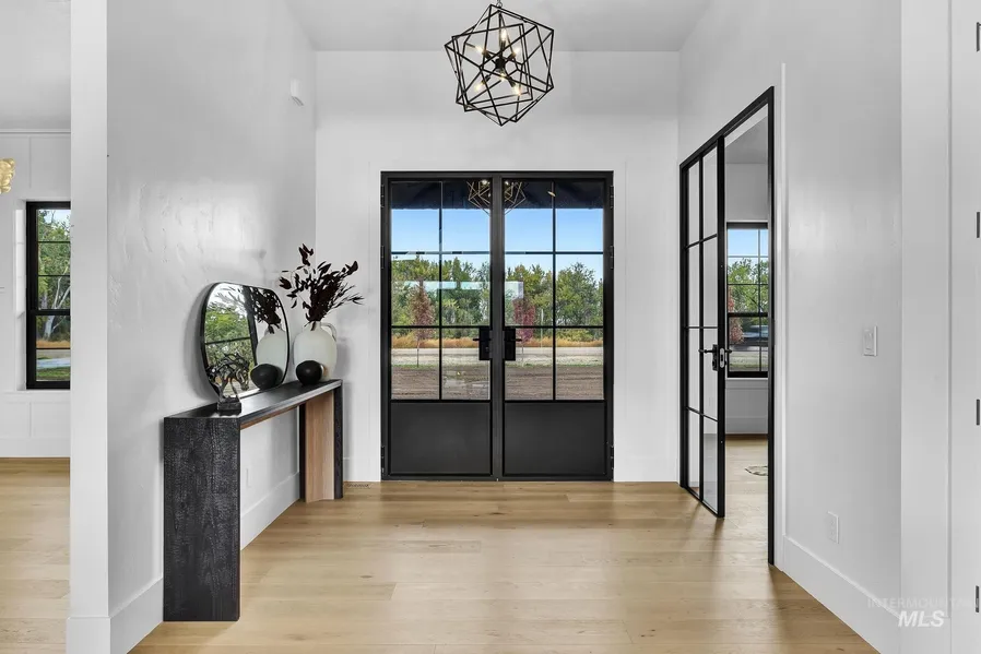 Experience a luxury home that’s truly out of the ordinary--where craftsmanship meets comfort in every detail. This beautifully designed home offers high-end finishes and a thoughtful layout with 3 spacious bedrooms, a dedicated office, and 3.5 bathrooms, all on 2.87 acres. From the moment you step inside, you’ll notice the elevated touches — custom millwork, designer lighting, Quartz and Granite countertops and a seamless blend of modern luxury and timeless Idaho charm. The kitchen and living areas flow effortlessly, creating the perfect setting for entertaining or quiet evenings. The primary suite is a true retreat- a peaceful escape with a spa-inspired bathroom featuring a soaking tub, walk-in tile shower, and two vanities that blend style with function. The expansive walk-in closet feels like a private boutique and offers direct access to the spacious utility room. Bedroom 2 is also ensuite with a full bath. Outside you'll find an impressive RV bay, offering exceptional space for all your vehicles, toys, and gear. Additionally, this lot allows for plenty of room to build a shop and/or a second dwelling. Located across from scenic Lake Lowell, this property offers a refined living and outdoor adventure right at your doorstep. Whether you’re watching sunsets or enjoying the peace of wide-open space, this home was thoughtfully designed and sets itself apart from the rest.