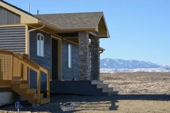 This homes has been engineered (roofline angles, etc) for maximum sun exposure. It is facing solar south. The solar panel array provides power that is stored in a battery bank. Power from the battery bank is inverted to provide 8,000 watts of power at 120 volts. Dual 4,000 watt inverters provide the home with 8,000 watts total power, which is the standard residential home hook-up. In the event there is not enough solar gain or extra power is needed there is a backup generator (4 cylinder Mitsubishi engine).