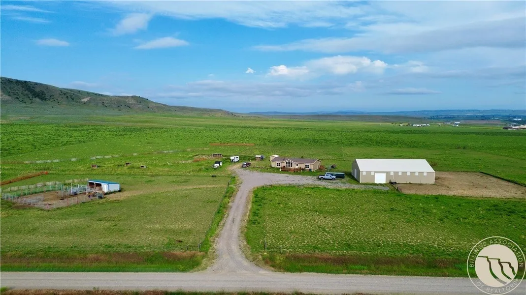 2016 manufactured home on a concrete insulated foundation with gravel floor. The home features upgraded finishes and sits on 40 acres, with an additional 20-acre parcel included (fronts on Pryor Road). The property is fully fenced and cross-fenced into 8 pastures or holding areas for livestock, with a separate fenced area for dogs around the home. Outbuildings include a shed, chicken coop, run-in/run-out shelter, and a large 60'x80' shop with tack area and small indoor arena. Two 2,000-gallon cisterns provide water storage, water delivery available in area. Electric and wood heat, plus central air. Beautiful views of the Pryor Mountains and surrounding grassland ranches. Located just a few miles from Edgar. AT&T for cell service, WhispWest & Direct TV.