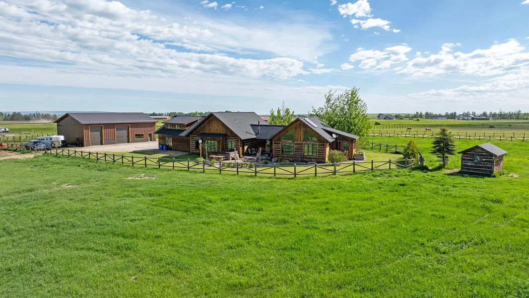 The spacious 4890 sq foot home has an open concept living area features a cozy fireplace and large windows that showcase the breathtaking views of the Beartooth Mountains. The kitchen is equipped with high-end appliances, concrete countertops, and a large island for entertaining. The master bedroom is a true retreat with a luxurious en-suite bathroom featuring a soaking tub, walk-in shower, and dual vanities. The 4 other bedrooms are generously sized and offer plenty of space for family or guests. Outside, the property consists of 5.17 acres beautifully landscaped yard perfect for enjoying the Montana summers and beautiful sunsets and sunrises. Automatic sprinklers enhance the large yard. The 60 x40 shop is a handyman's dream with radiant heat, large doors for working on semis and or farm machinery and ample storage space, and room for all of your toys. Property is located in the Red Lo...