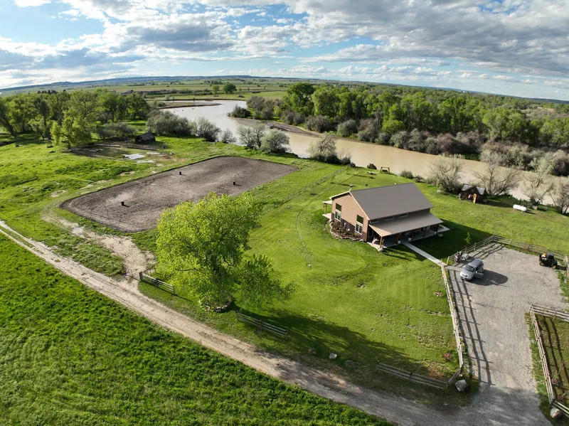 This one-of-a-kind property boasts exclusive frontage along the Clarks Fork River and features a newly constructed home, with 2 bedrooms, 1.5 baths, and approximately 2500 square feet of living space. The home features an amazing open concept living floor plan, highlighted by a gorgeous kitchen and spacious custom island. Countless charming details contribute to making this house a true country home. Enjoy fishing right off your back porch and the convenience of your own outdoor riding arena, making this a must-see property for those seeking tranquility and outdoor adventure. This beautiful oasis captures all the joys of country living, all while being only a 35-minute drive to Billings. Property can be purchased in conjunction with MLS #346386 (C...