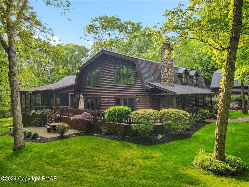 This Stunning custom built authentic Log home needs a new Family! This Home sits in an AirBnB approved community with a gorgeous Lake with private beach, playground, pool, tennis and so much more. The Great room comes equipped with a Stone Gas FP and Bose surround sound keeping you and your guests entertained. Tons of windows allow you to let in the sunshine while also enjoying what Mother nature has to offer.Radiant heat Hickory floors on the main floor, gives this home a special feel. Triple sliding doors lead to the hot tub and lounge area. The Gourmet kitchen has New Wall ovens. Gas range with tasteful Brick hearth and Boos butcher block, tons of lighting, granite counters and huge Island. Too many features to list here.