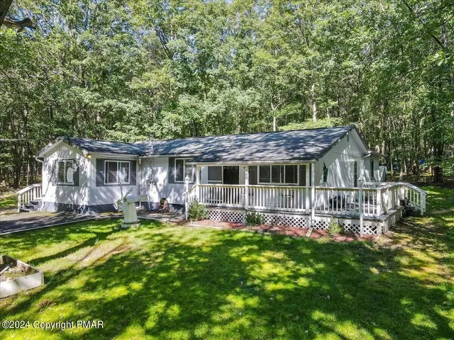 PRICE IMPROVEMENT and a $5,000 CREDIT offered to buyers at closing!! This spacious 3-bed, 1-bath well maintained, move-in ready ranch sits on over half an acre in the gated community of Indian Mountain Lakes. Enjoy the scenic Pocono views from your covered porch, wrap-around deck, and take advantage of the large shed for extra storage. Just a 15-minute walk to the beach at Lake Boulder, with access to five lakes, two pools, basketball and tennis courts. Perfect as a home or short-term rental! Close to major Pocono attractions such as ski resorts, Pocono Raceway, Jim Thorpe, and outdoor activities. Priced to sell fast—schedule your showing today!