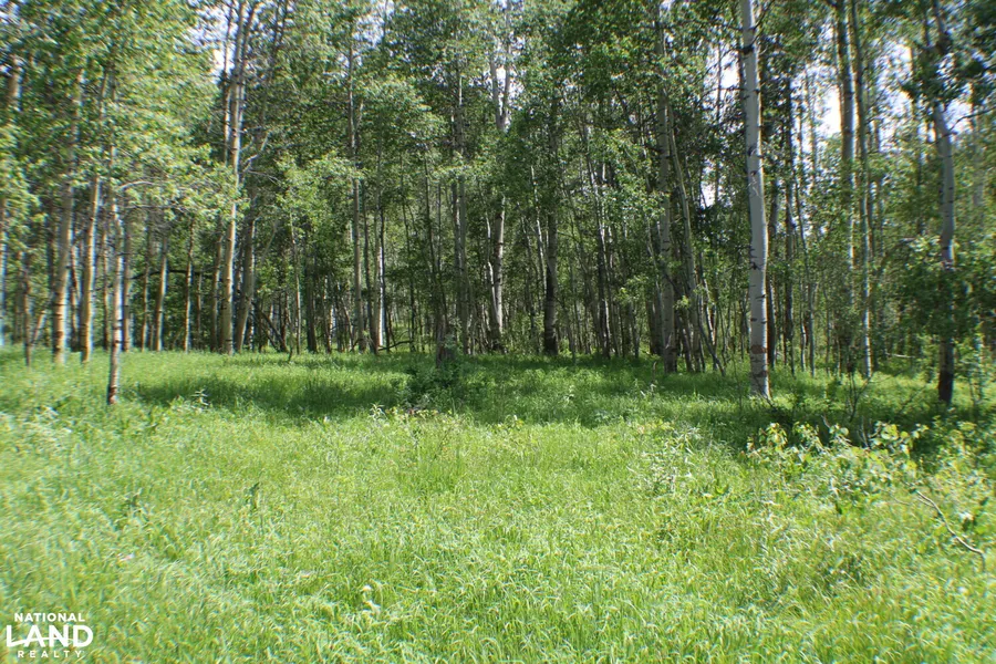 At the southwest end, over 50% of the property unfolds into expansive grasslands punctuated by gentle rolling hills, providing a serene backdrop for any outdoor enthusiast. Meanwhile, the northeast end features a charming mix of aspen and pine trees, covering approximately 10 acres, creating a tranquil retreat perfect for exploring and unwinding.