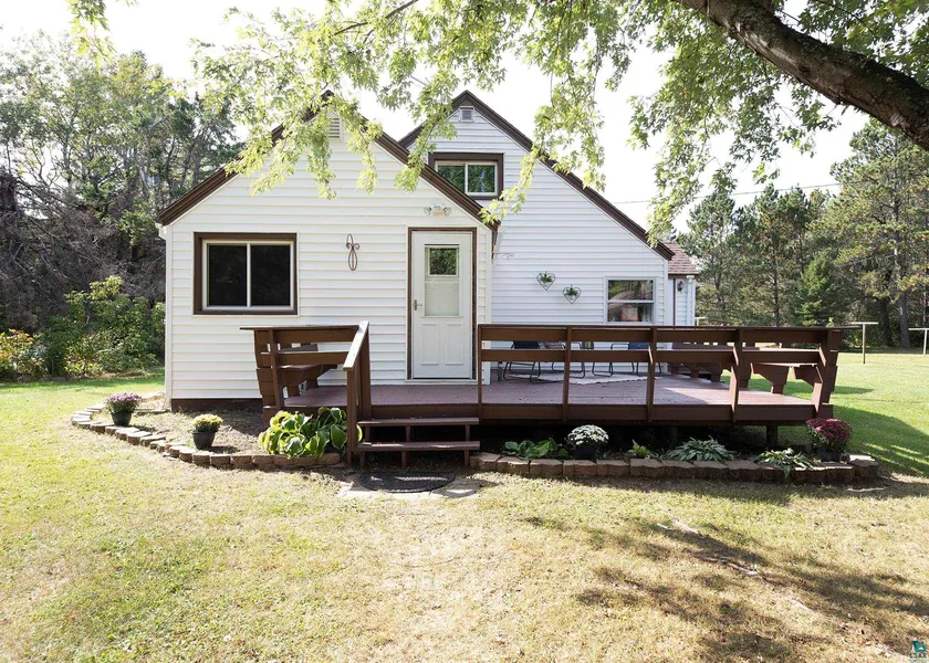 Welcome to this adorable 2-bedroom, 2-bathroom home, perfectly situated on a serene, private lot in a great location. This cozy home offers comfort and convenience, with modern finishes and a warm, inviting atmosphere. There is new carpet, lighting, and paint throughout the entire home. Vinyl siding and windows, along with a large wrap around deck that was just stained. 2 amazing garages, 32x24 (heated, insulated) and 24x18. There are beautiful trees and perennial gardens around the property. This home is ideal for anyone seeking a peaceful retreat while being just minutes away from the conveniences of town. Don't miss the opportunity to make this house your home!