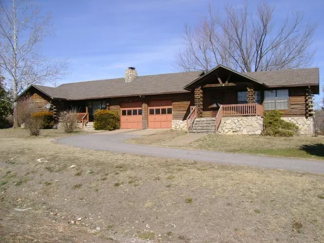 Great commercial potential! 3BR/2BA Log home on 1.98 acres with Hwy 62 frontage in city limits. 600 sq ft room with seperate entrance could be used as retail shop.